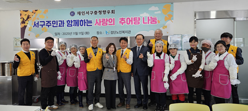 검단노인복지관은 지난 11일 재인서구충청향우회, 친환경기업 ㈜이도에코인천 등의 후원으로 지역 어르신 500여 명에게 추어탕과 이미용서비스를 제공했다고 밝혔다.